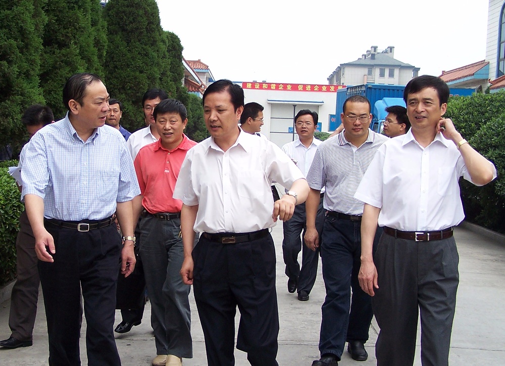 Huang Kunming (first from left), the deputy minister of the Central Propaganda Department and the director of the Central Civilization Office (the secretary of the CPC Jiaxing Municipal Committee), was instructed by Zhejiang Hongda Warp Knitting Co., Ltd.