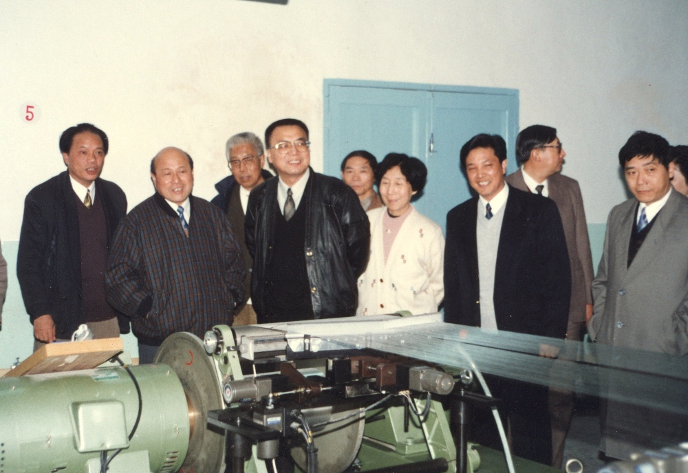 Former member of the Standing Committee of the Zhejiang Provincial Committee of the Communist Party of China, Secretary of the Hangzhou Municipal Party Committee, then the Secretary of the CPC Jiaxing Municipal Party Committee Wang Guoping and the provincial and municipal leaders in the workshop of Zhejiang Hongda Warp Knitting Industrial Company.