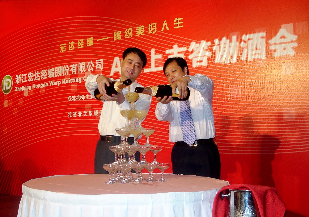 嘉興市人大常委會(huì)副主任(時(shí)任中共海寧市委書記沈利農(nóng))在“宏達(dá)經(jīng)編”新股上市儀式上