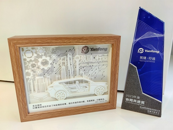 2023年11月3日,延鋒內飾亞太舉辦主題為“筑鏈·行遠”的伙伴日活動,“宏達高科”應邀出席共襄盛舉。會上延鋒內飾亞太總經(jīng)理莫毅、信息技術總監(jiān)張晉、技術中心知識管理部高級經(jīng)理高俊、采購總監(jiān)尹航等介紹了延鋒內飾亞太未來的五年計劃,采購策略以及中國及世界乘用車市場的發(fā)展方向趨勢等。憑借著長期穩(wěn)固的合作和創(chuàng)新能力,宏達高科榮獲“2023年度協(xié)同進步獎”,公司總經(jīng)理許建舟出席活動并領獎。