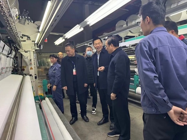 呂忠飛書記一行參觀了公司生產車間,慰問全國紡織工業勞動模范、公司織造部主管趙巧娟,調研企業家和高素質勞動者,傾聽企業高質量發展戰略及人才訴求。