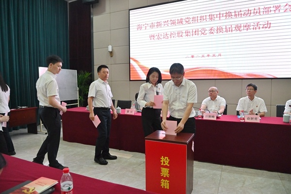 5月30日上午,宏達(dá)集團(tuán)黨委換屆選舉大會(huì)順利召開(kāi)。會(huì)議聽(tīng)取審議了第六屆委員會(huì)工作報(bào)告,選舉產(chǎn)生第七屆黨委委員。海寧市委副書(shū)記、社會(huì)工作部部長(zhǎng)呂忠飛,市委社會(huì)工作部副部長(zhǎng)、兩新工委副書(shū)記張紅,市派黨建指導(dǎo)員俞新甫、許村鎮(zhèn)黨委書(shū)記許新鋒,許村鎮(zhèn)黨委副書(shū)記楊路錢(qián)、各鎮(zhèn)街道分管領(lǐng)導(dǎo)等應(yīng)邀出席會(huì)議,集團(tuán)黨委全體黨員及集團(tuán)下屬公司支部負(fù)責(zé)人及關(guān)聯(lián)單位共計(jì)100余人參加會(huì)議。