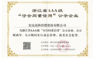 2024年8月,宏達(dá)高科通過(guò)浙江省AAA級(jí)“守合同重信用”企業(yè)復(fù)評(píng)。據(jù)悉..